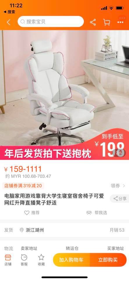 ▼ 淘宝 – 靠背电脑椅(约 RM100-RM698)