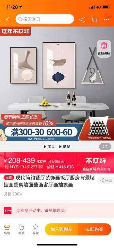 ▼ 淘宝 – 餐厅装饰画(约 RM130-RM276)