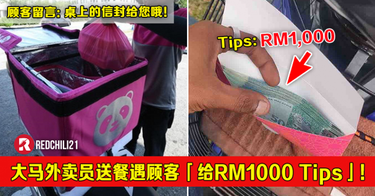 许多人点外卖时为了感谢外卖员的用心服务和辛苦,就会给他们一点现金作为贴士(tips),但马币4位数的贴士你见过吗?!