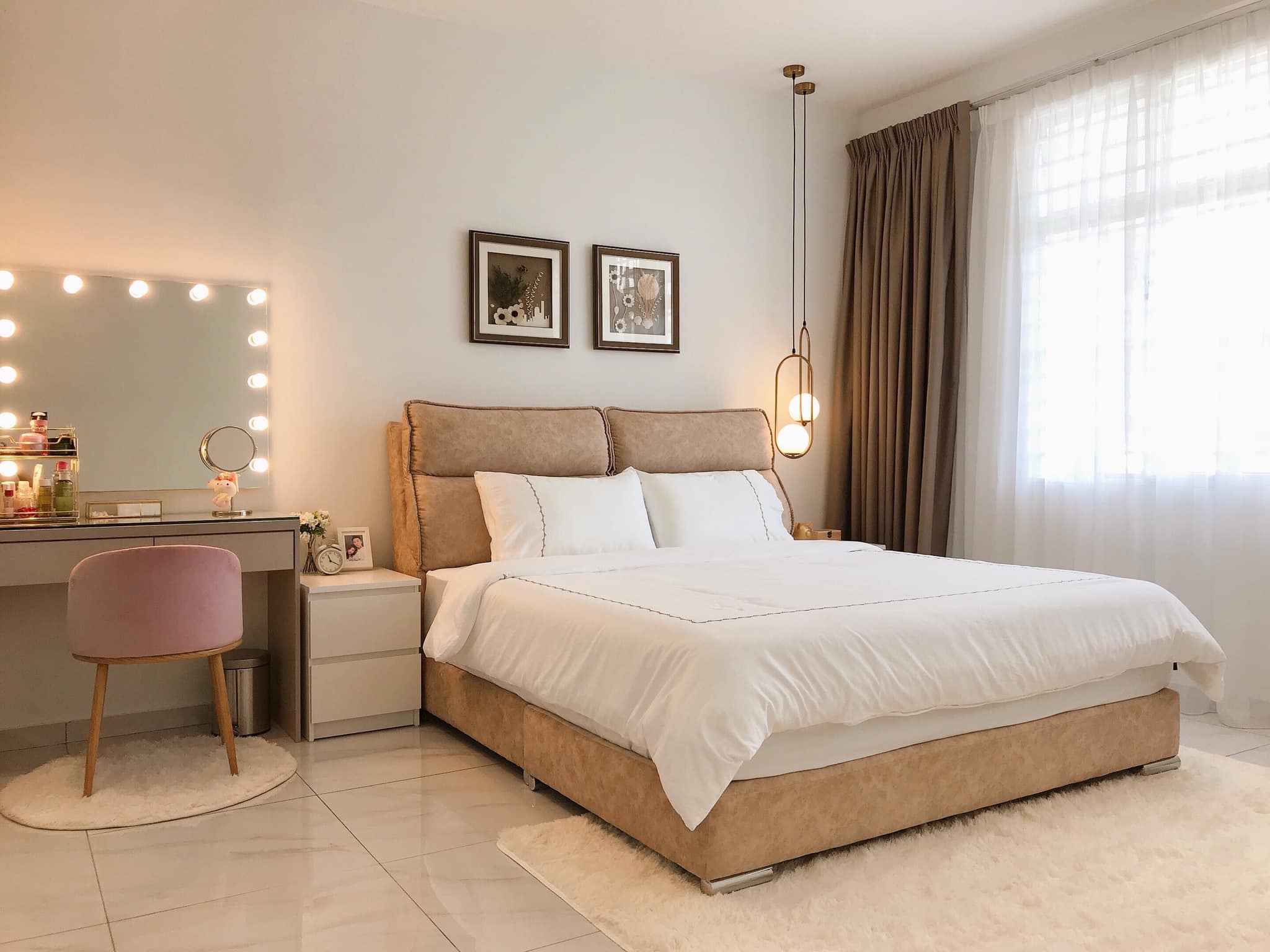 ▼ After:落地窗帘和地毯都是必须哒~喜欢干净的感觉,所以就算难照顾还是买了白色床单。
