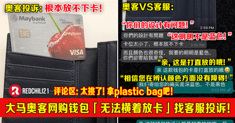 大马奥客网购钱包「无法横着放卡」找客服投诉!评论区:太挑了!拿plastic bag吧!
