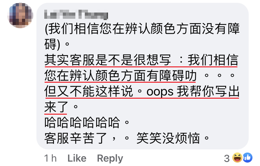 客服人员:「亲,这种钱包的设计都是打直放的哦,我们视频也有介绍呢!我们相信您在辨认颜色方面并没有障碍,但这的确是深蓝色哦,虽然颜色较深,但是在灯光下还是很明显看得出是蓝色噢!」