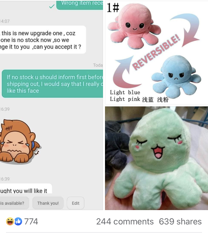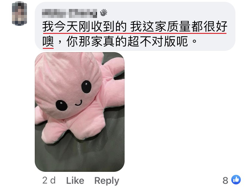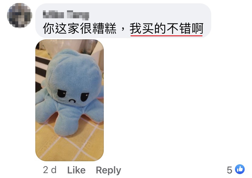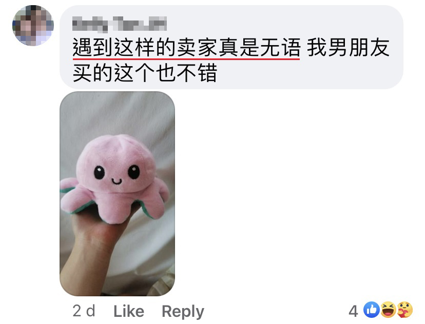 不过这名大马女子在网购翻面章鱼的时候就遇到了货不对版的情况,评论区都替她打抱不平!