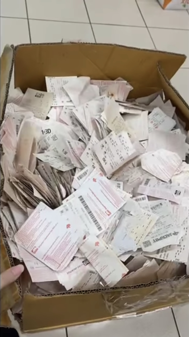 这一大箱收据的主人希望透过网络,劝大家不要再沉迷于买万字,否则像他现在这样后悔莫及了。