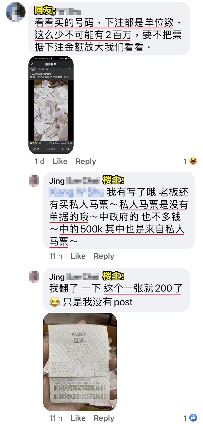 重点是:35年里面才中RM500千,还要输RM150万!这位老板平均每个月买马票 RM8000-RM10000!
