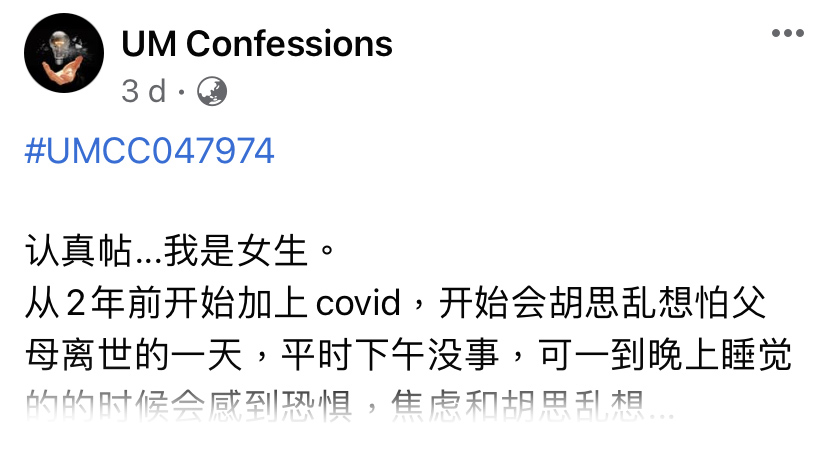从2年前开始加上covid,开始会胡思乱想,怕父母离世的一天,平时下午没事,可一到晚上睡觉的时候会感到恐惧、焦虑和胡思乱想…