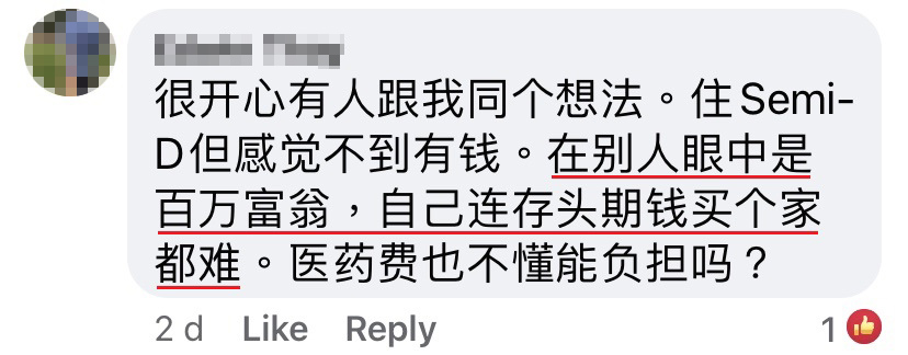 现在依然还在跟家里一起住,家境不算差,住semi-d(半独立式房子)。但是会很自责自己还没能力让父母退休享福。每天看到父母一天比一天老,经常看医生,看到他们经常为我们操心很心疼。比如我现在在供完车又要供屋。