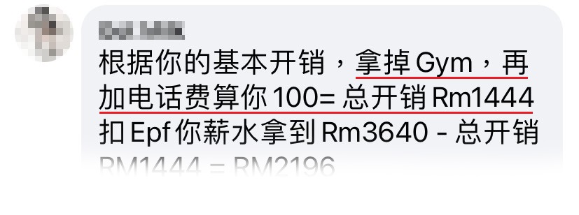 根据你的基本开销,拿掉Gym,再加电话费算你RM100 = 总开销RM1,444