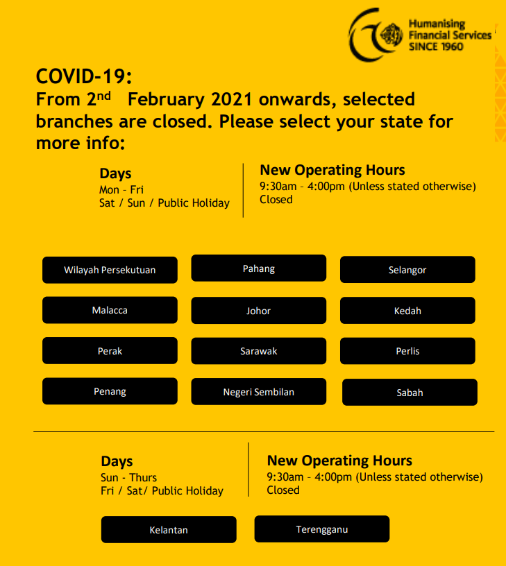 ※ 如今大马还实施着MCO,所以一些地区的Maybank 分行会暂时关闭及更改营业时间!
