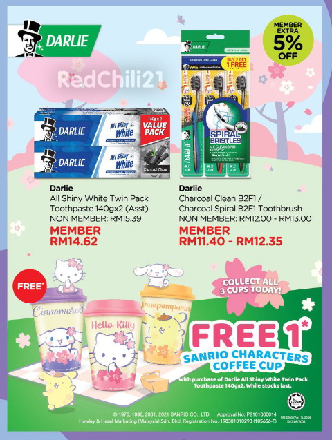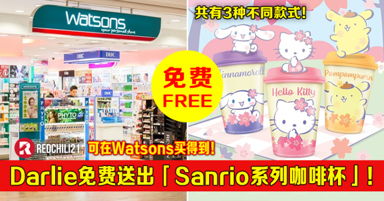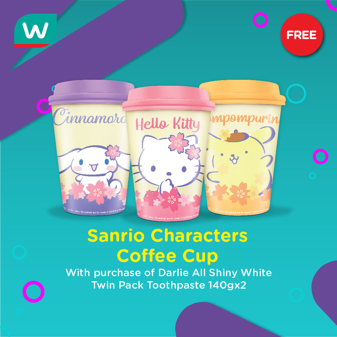 只要你在大马Watsons 购买Darlie All Shiny White Twin Pack(140g x2) ,就可免费获得一个Sanrio 咖啡杯!共有三种款式!