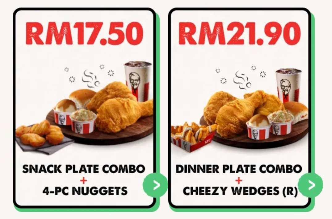 这项优惠是KFC 官网和手机App 推出【Stay In & Order In Get RM8 Off】 和【Bucketful Of Deals】促销优惠!Cheezy Wedges(L) 只需RM4.20!2份Snack Plate 炸鸡套餐只需22.50!