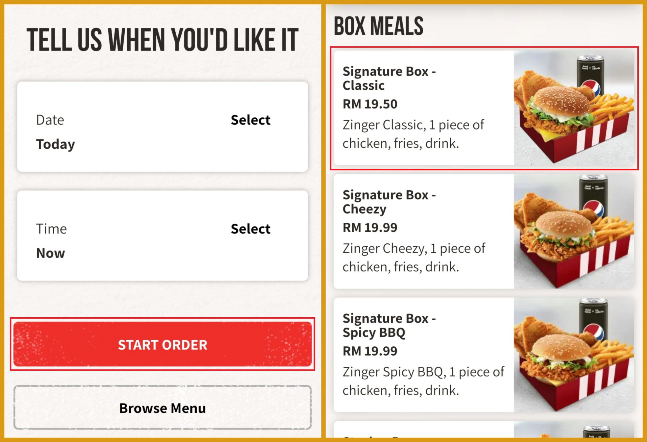 步骤3:选择你想订购的食物/套餐,例如:Signature Box-Classic。
