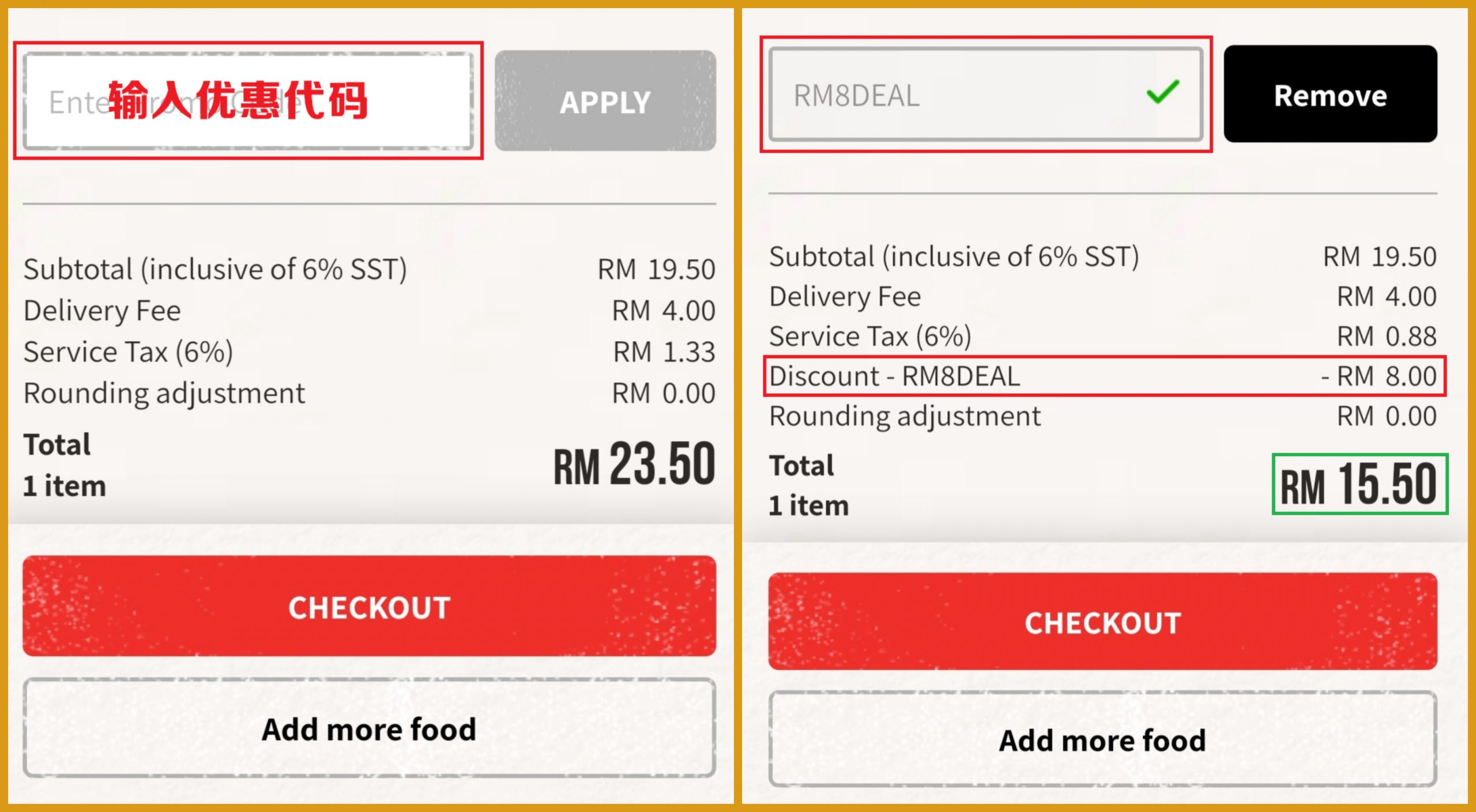 步骤4:输入优惠码【RM8DEAL】。然后,点击「Apply」。