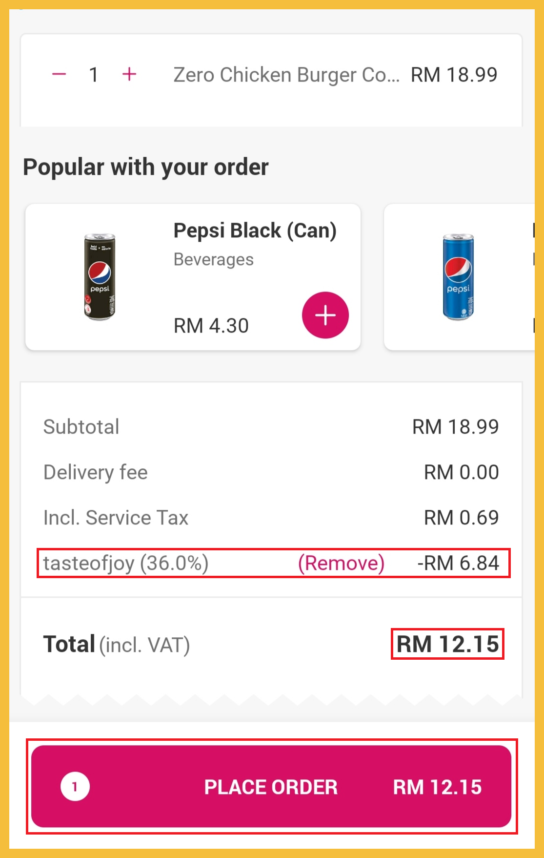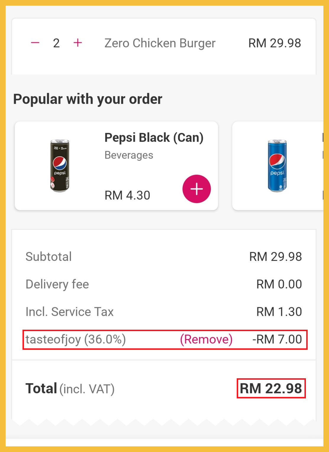 ※ 为了要消费满RM18,才可获得【TASTEOFJOY】优惠代码的折扣!
