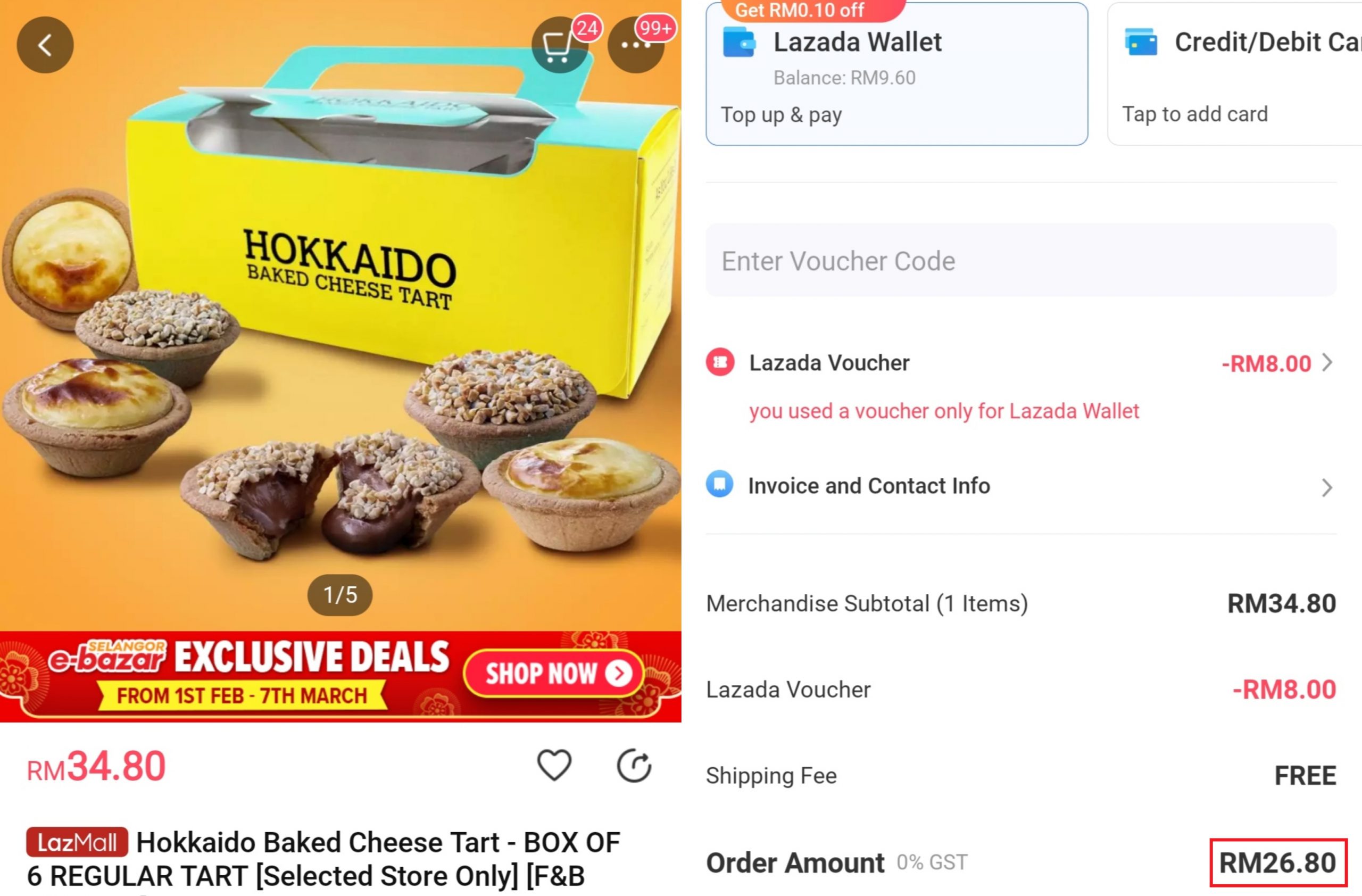 3. Hokkaido Baked Cheese Tart (6个Regular Tart) — 只需RM26.80(平均一个挞只需RM4.46)