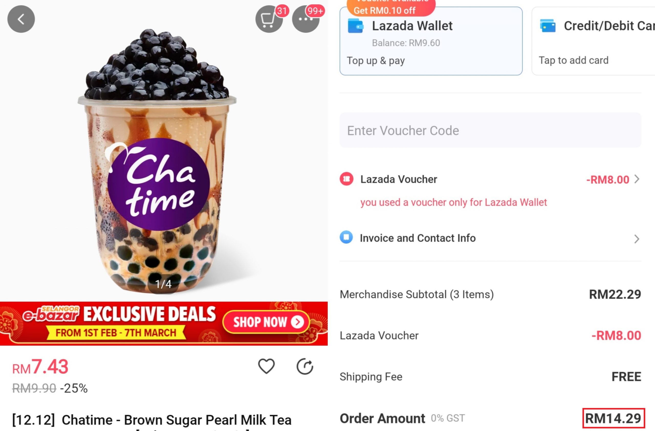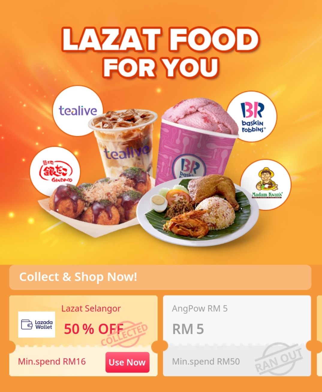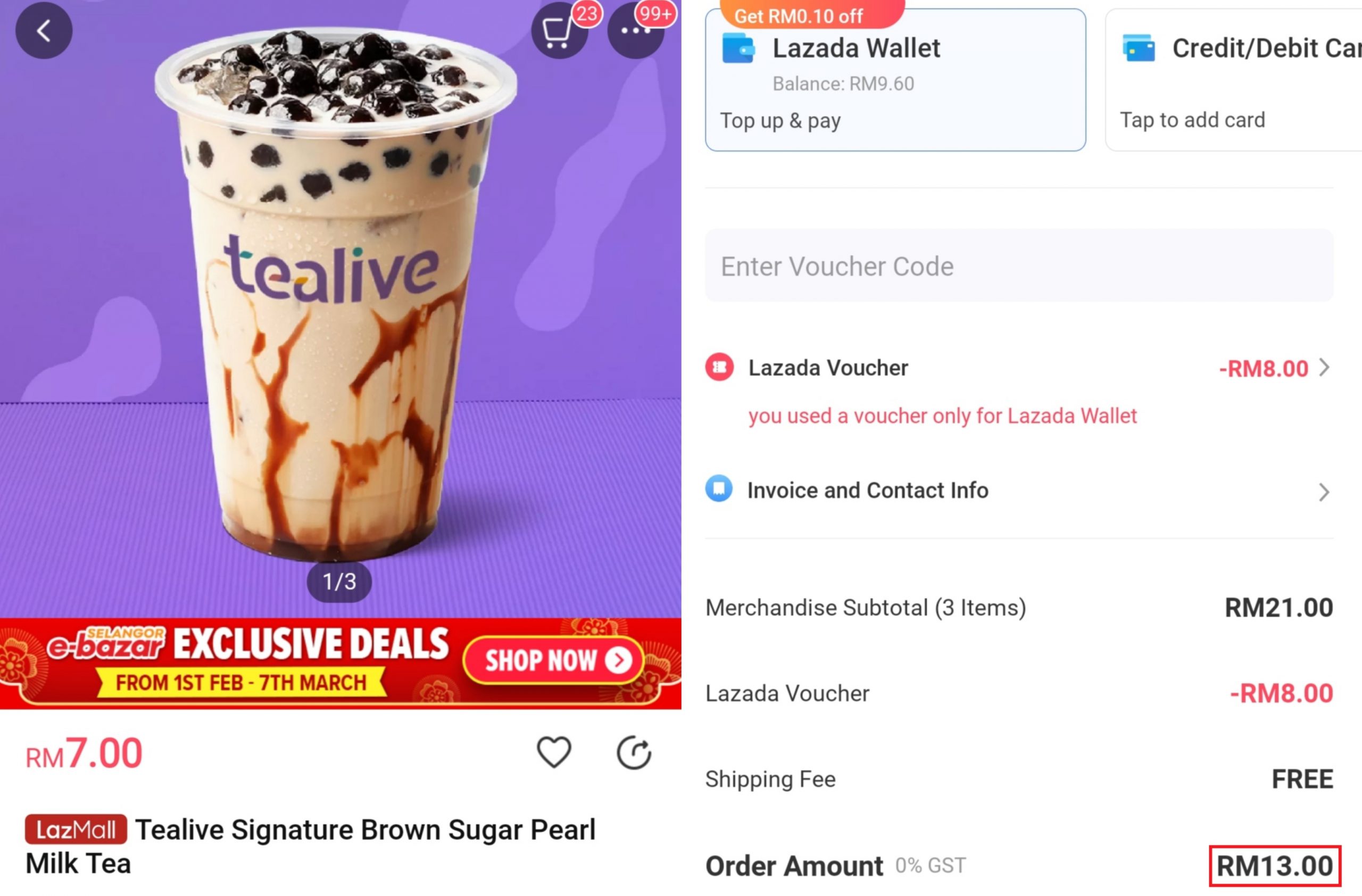 Lazada推出美食饮料50%折扣优惠!SR主食只需RM7、Tealive饮料只需RM4.33!