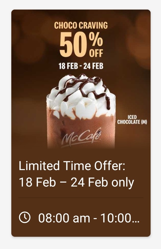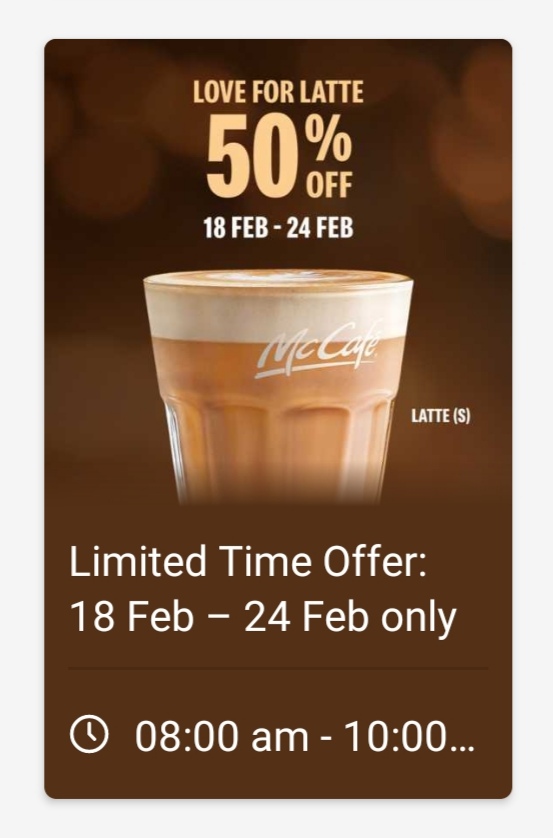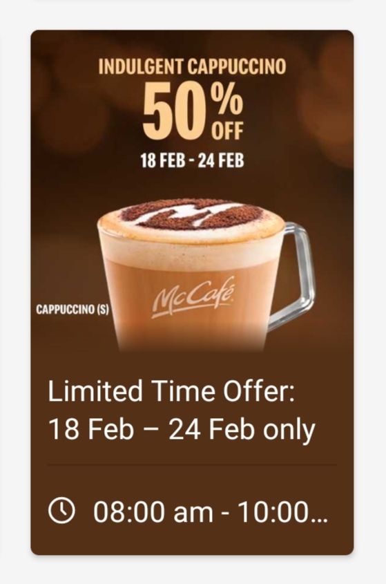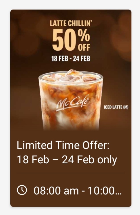 大马麦当劳(McDonald’s)即日起至2月24日,推出各种咖啡饮品50%折扣!