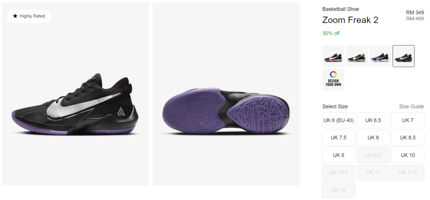 ▼ Basketball Shoe Zoom Freak 2(折扣30%)—— 只需RM349(原价RM409)