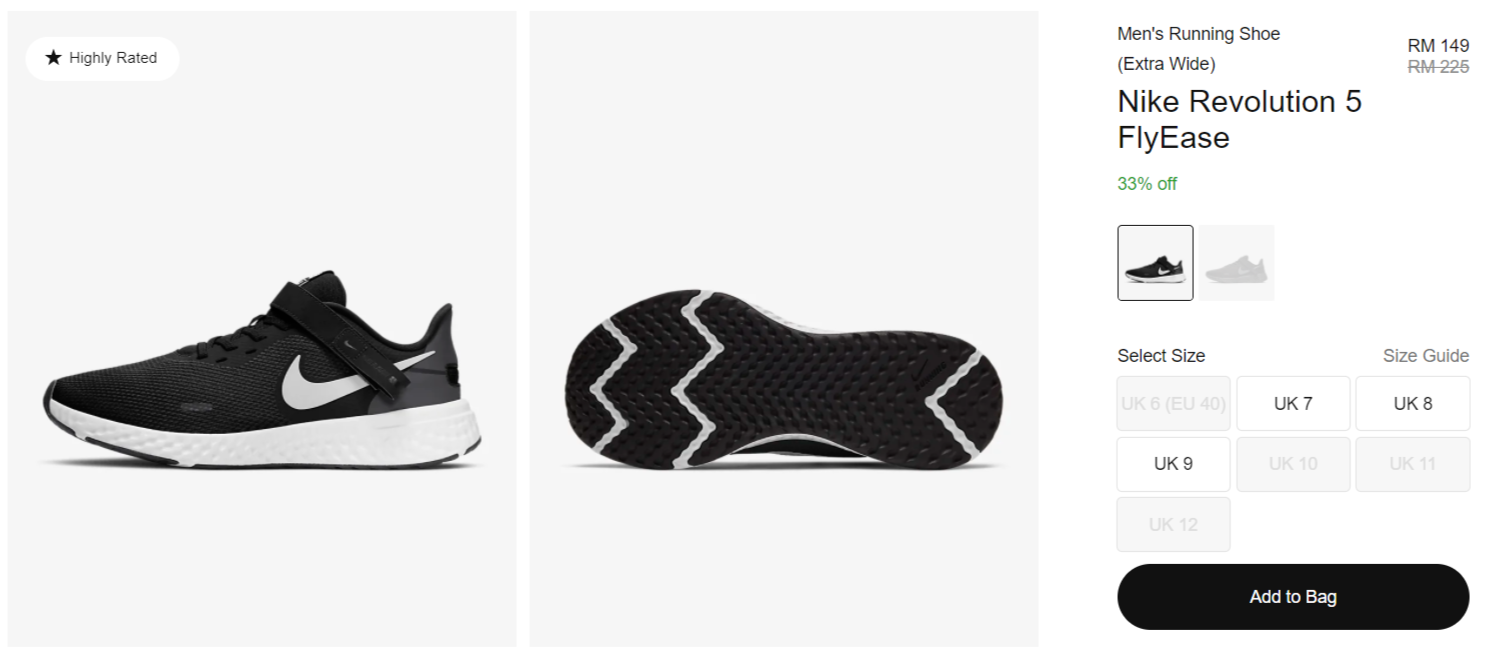 ▼ Men’s Running Shoe (Extra Wide) Nike Revolution 5 FlyEase(折扣33%)—— 只需RM149(原价RM225)