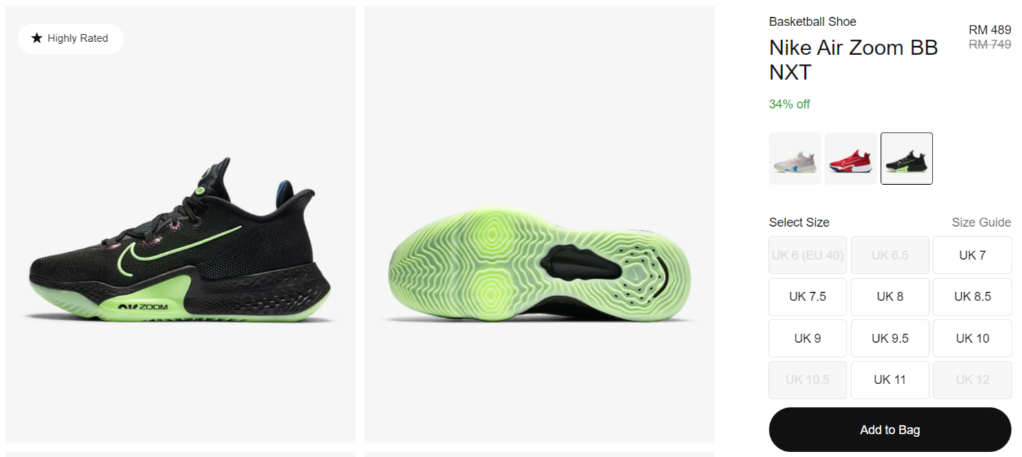 ▼ Basketball ShoeNike Air Zoom BB NXT(折扣34%)—— 只需RM489(原价RM749)
