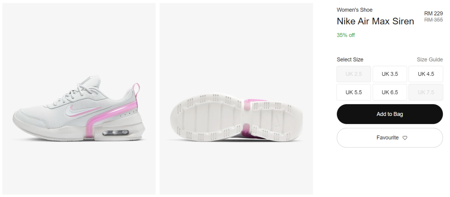 ▼ Women’s ShoeNike Air Max Siren(折扣35%)—— 只需RM229(原价RM355)