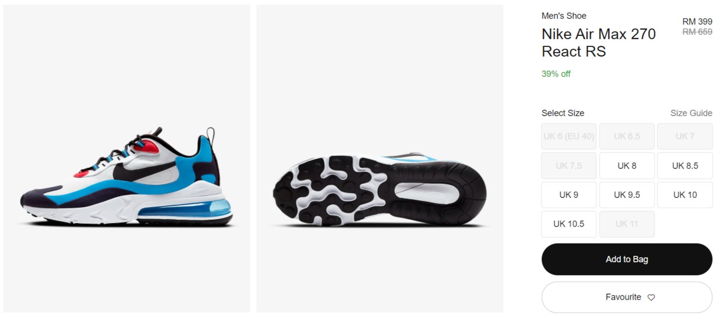 ▼ Men’s Shoe Nike Air Max 270 React RS(折扣39%)—— 只需RM399(原价RM659)