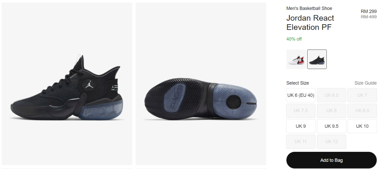 ▼ Men’s Basketball Shoe Jordan React Elevation PF(折扣40%)—— 只需RM299(原价RM499)