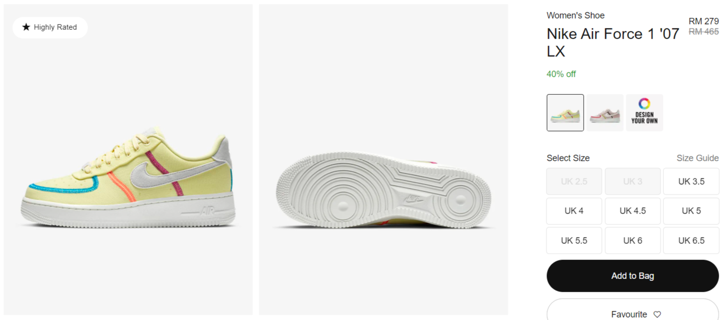 ▼Women’s Shoe Nike Air Force 1 ’07 LX(折扣40%)—— 只需RM279(原价RM465)