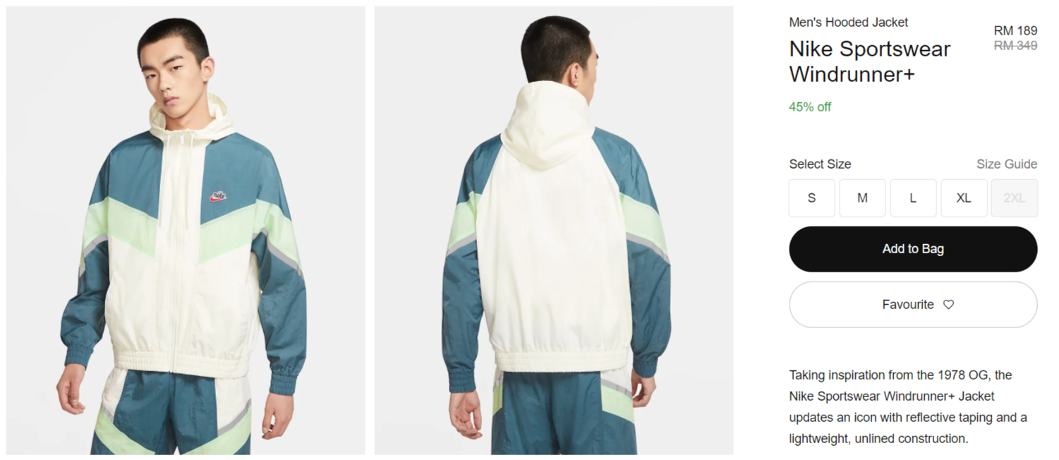▼ Men’s Hooded Jacket Nike Sportswear Windrunner+(折扣45%) —— 只需RM189(原价RM349)