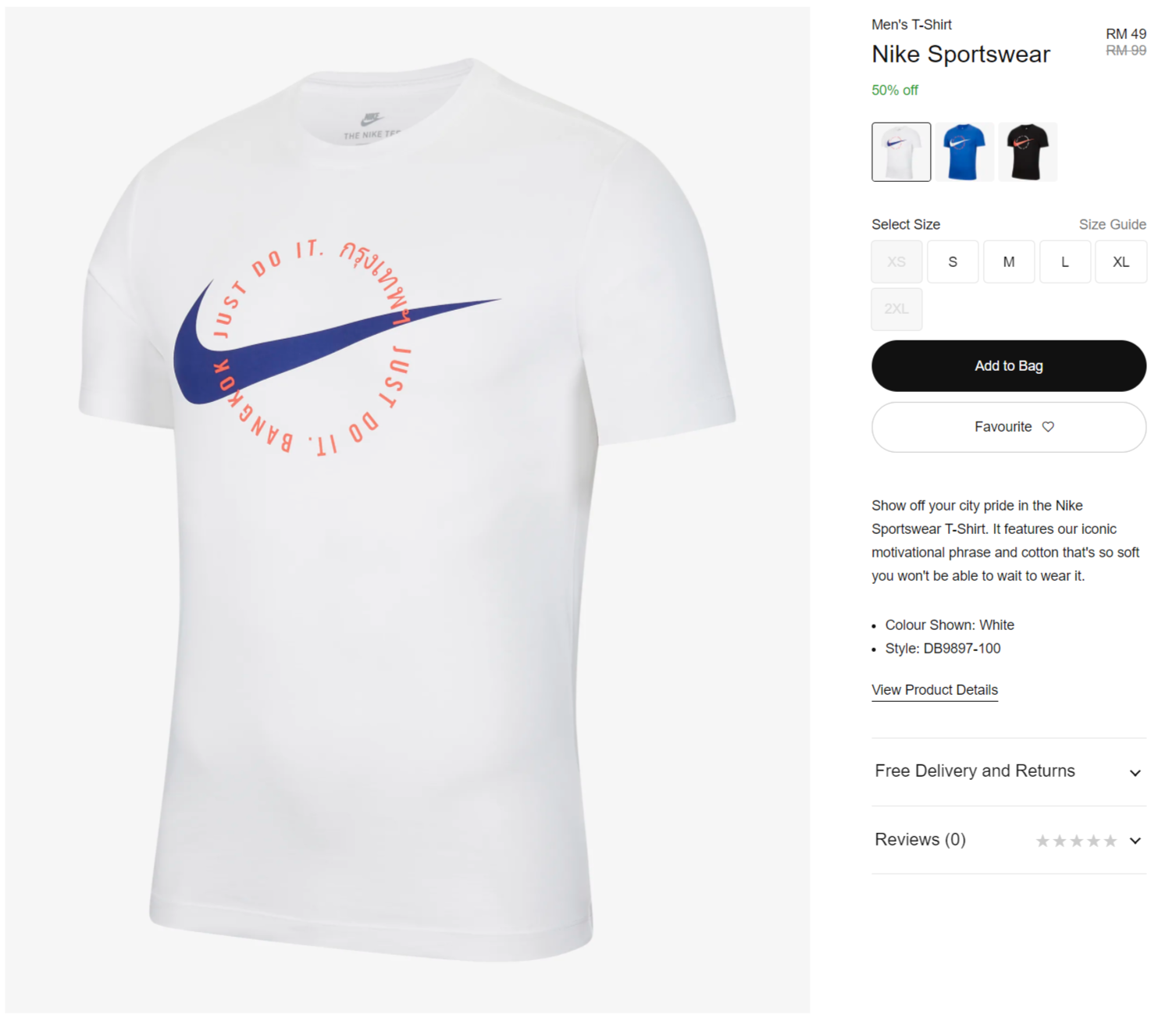▼ Men’s T-Shirt Nike Sportswear(折扣50%) —— 只需RM49(原价RM99)