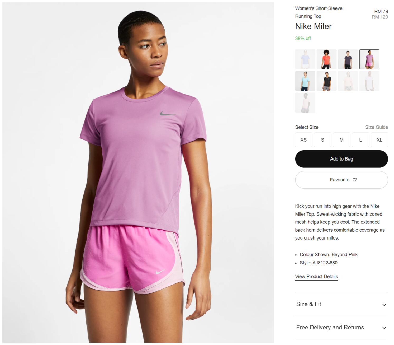 ▼ Women’s Short-Sleeve Running Top Nike Miler(折扣38%)—— 原价RM79(原价RM129)