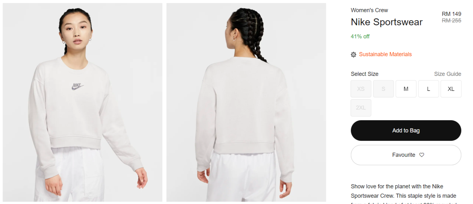 ▼ Women’s Crew Nike Sportswear(折扣41%)—— 原价RM149(原价RM255)