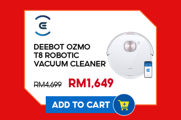 ▪ Ecovacs Deebot Ozmo T8 Robotic Vacuum Cleaner with TrueDetect 3D & TrueMapping Technology – RM4699 RM1649