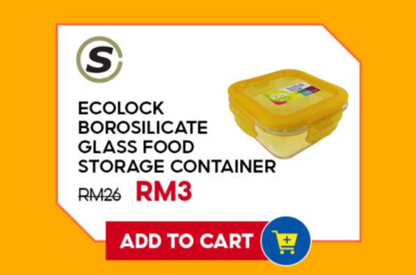 ▪ Felli Ecolock Borosilicate Glass Food Storage Container (320ml) – RM26 RM3