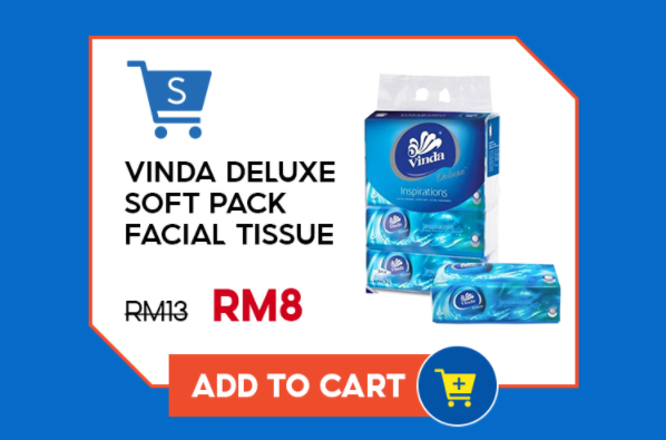 ▪ Vinda Deluxe Soft Pack Facial Tissue Large (120s x 4) – RM13 RM8