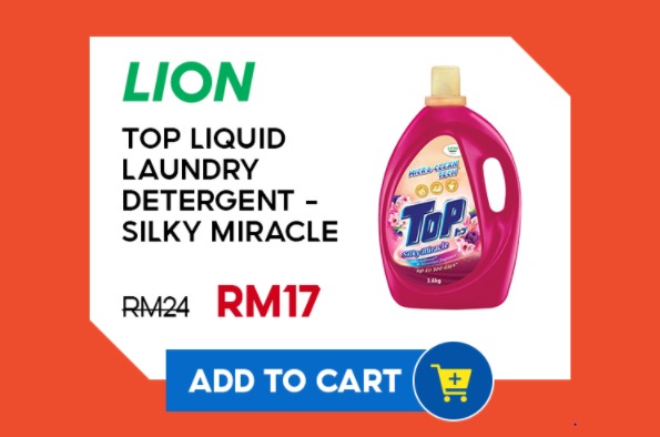▪ TOP Liquid Laundry Detergent – Silky Miracle (3.6kg) – RM24 RM17