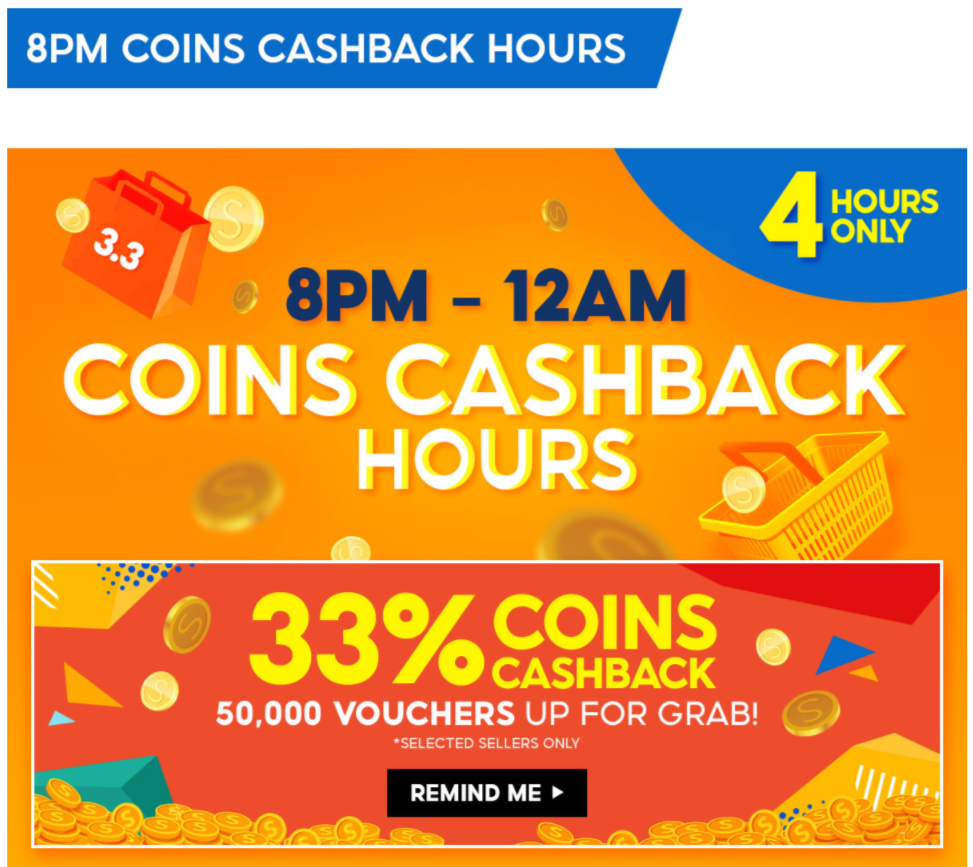▼⑦ 8PM -12AM Coins Cashback Hours【点击这里】