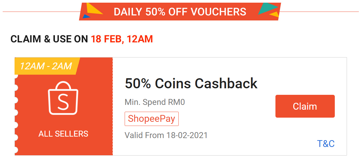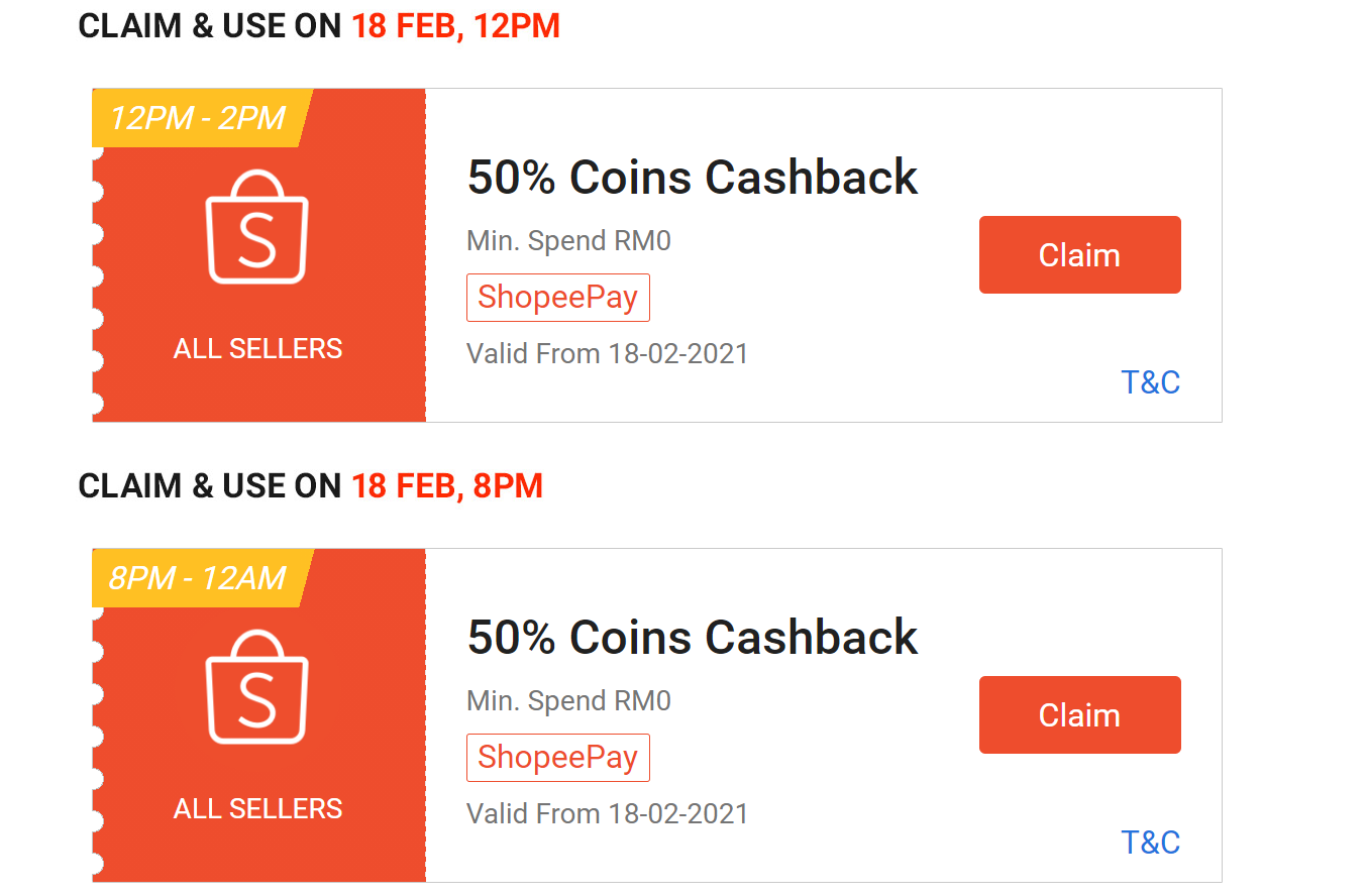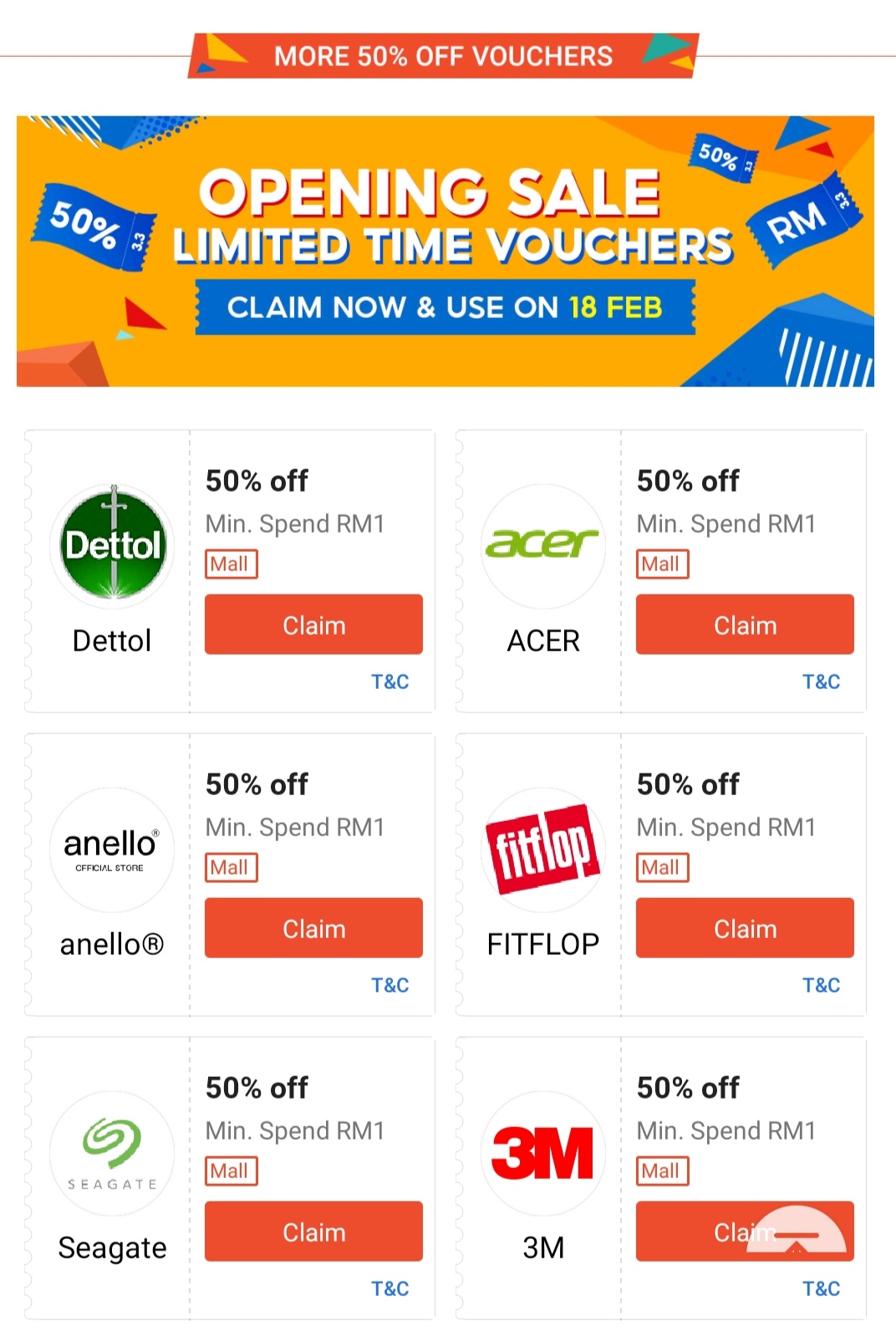 ※ 2月18日当天12am、12pm 及8pm 推出50%现金回扣券!记得去领取!