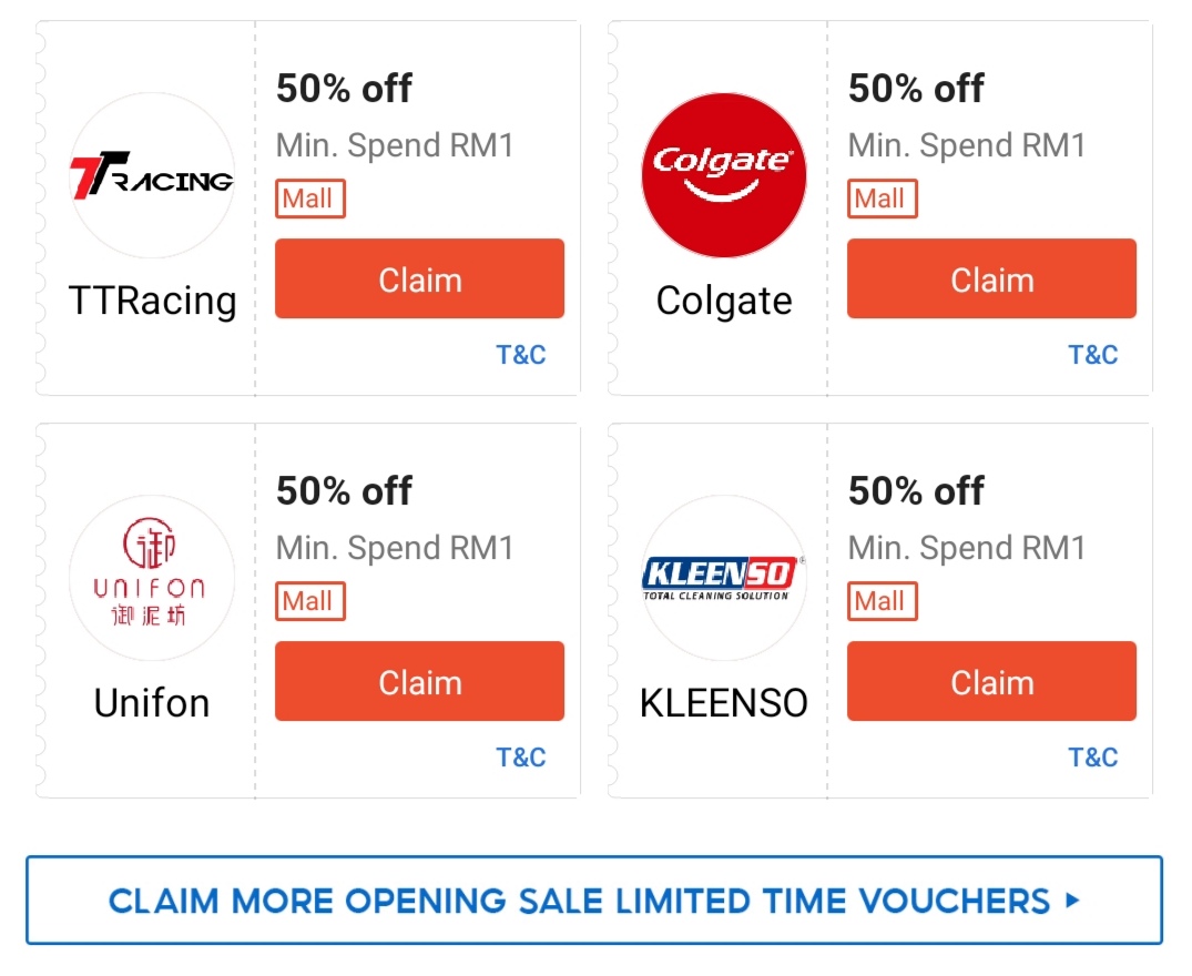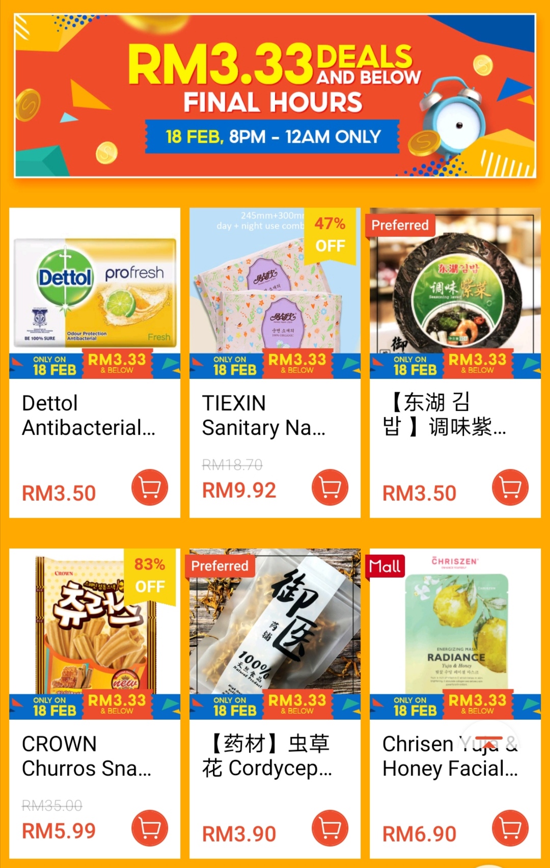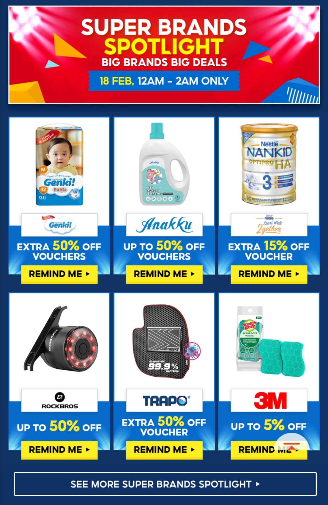 ※ 2月18日当天12am、12pm 及8pm 推出50%现金回扣券!记得去领取!