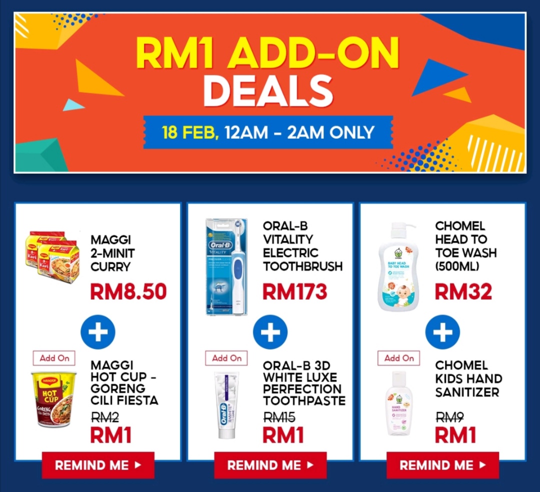 ※额外添购指定商品只需RM1!限于2月18日的12am 至2am 这两个时段!