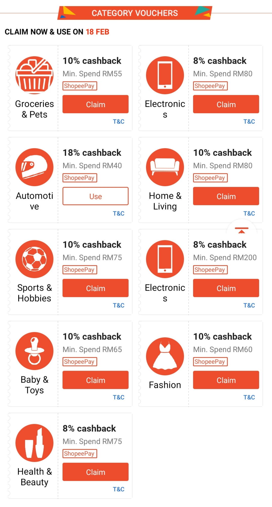 ※ 18日当天只要消费指定数额可获得现金回扣!记得领取以下Voucher 哦!