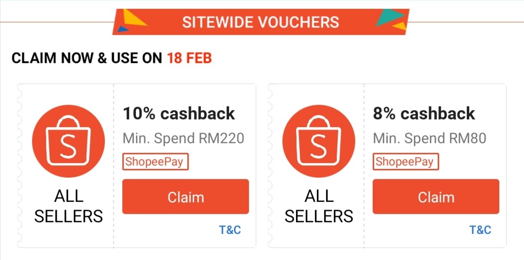 ※ 18日当天只要消费指定数额可获得现金回扣!记得领取以下Voucher 哦!