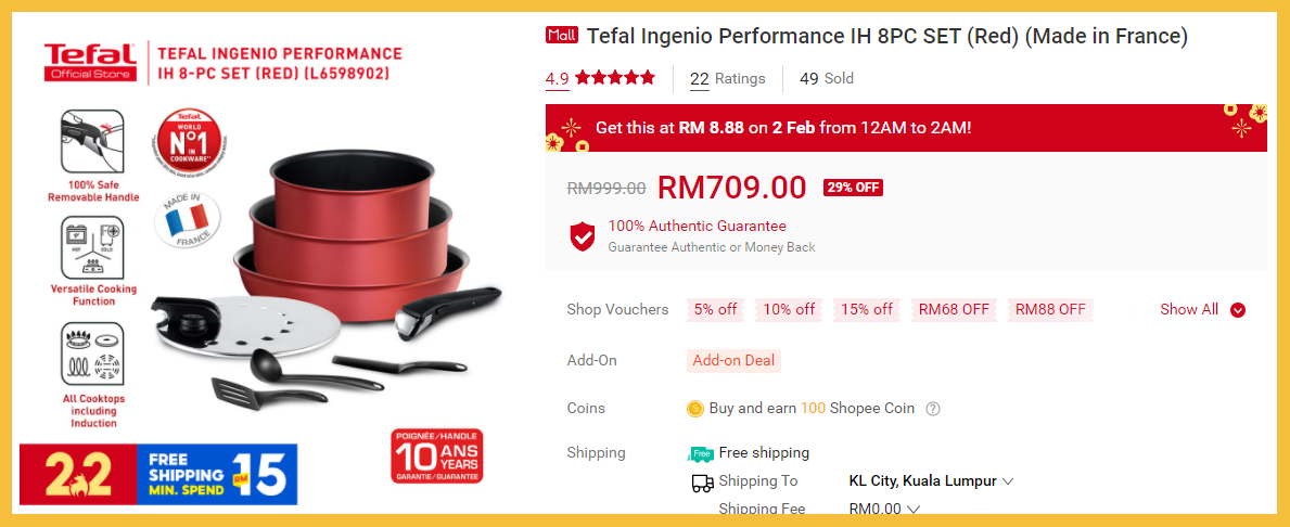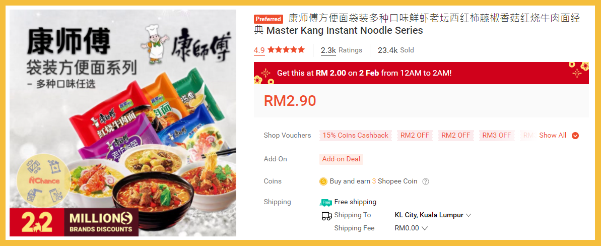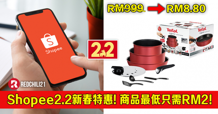 那就是Shopee 官网推出【2.2新春】大促销啦!在这次促销商品中,有:食品、锅铲套组、气炸锅、洗衣液等等,最低只需RM2!