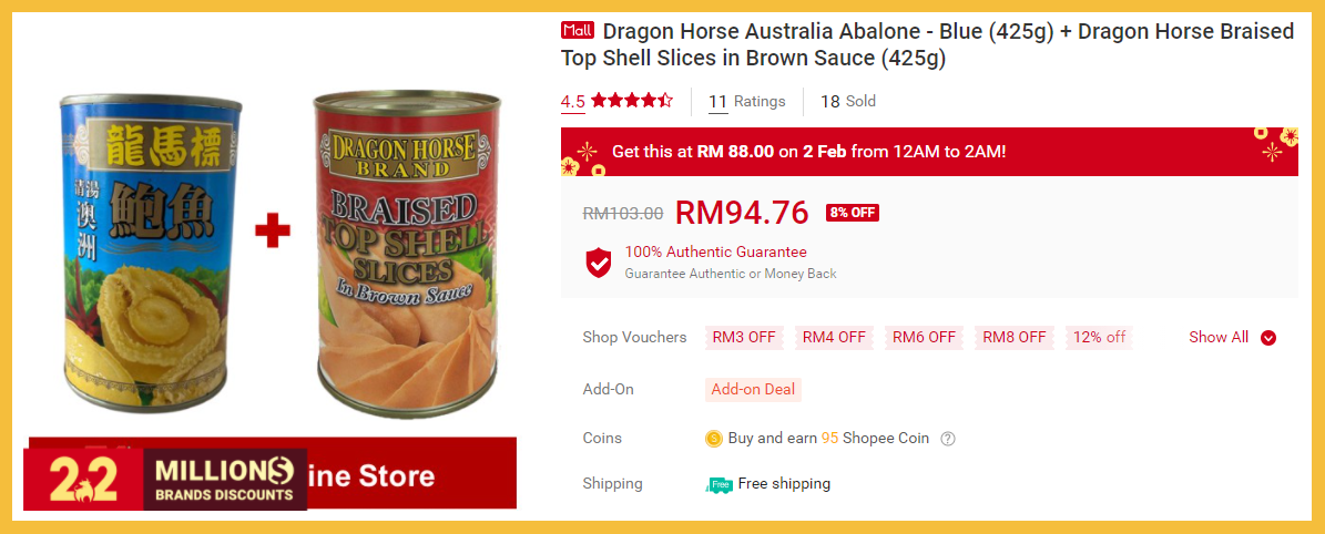 ▪ Dragon Horse Australia Abalone – Blue (425g) + Dragon Horse Braised Top Shell Slices in Brown Sauce (425g) – RM94.76  RM88