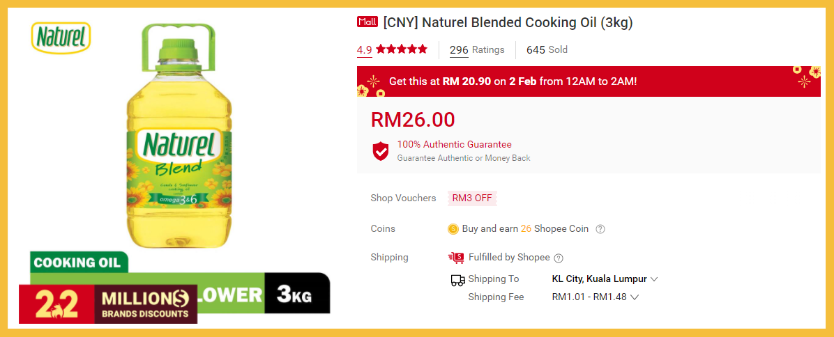 ▪ Naturel Blended Cooking Oil (3kg) – RM26  RM20.90