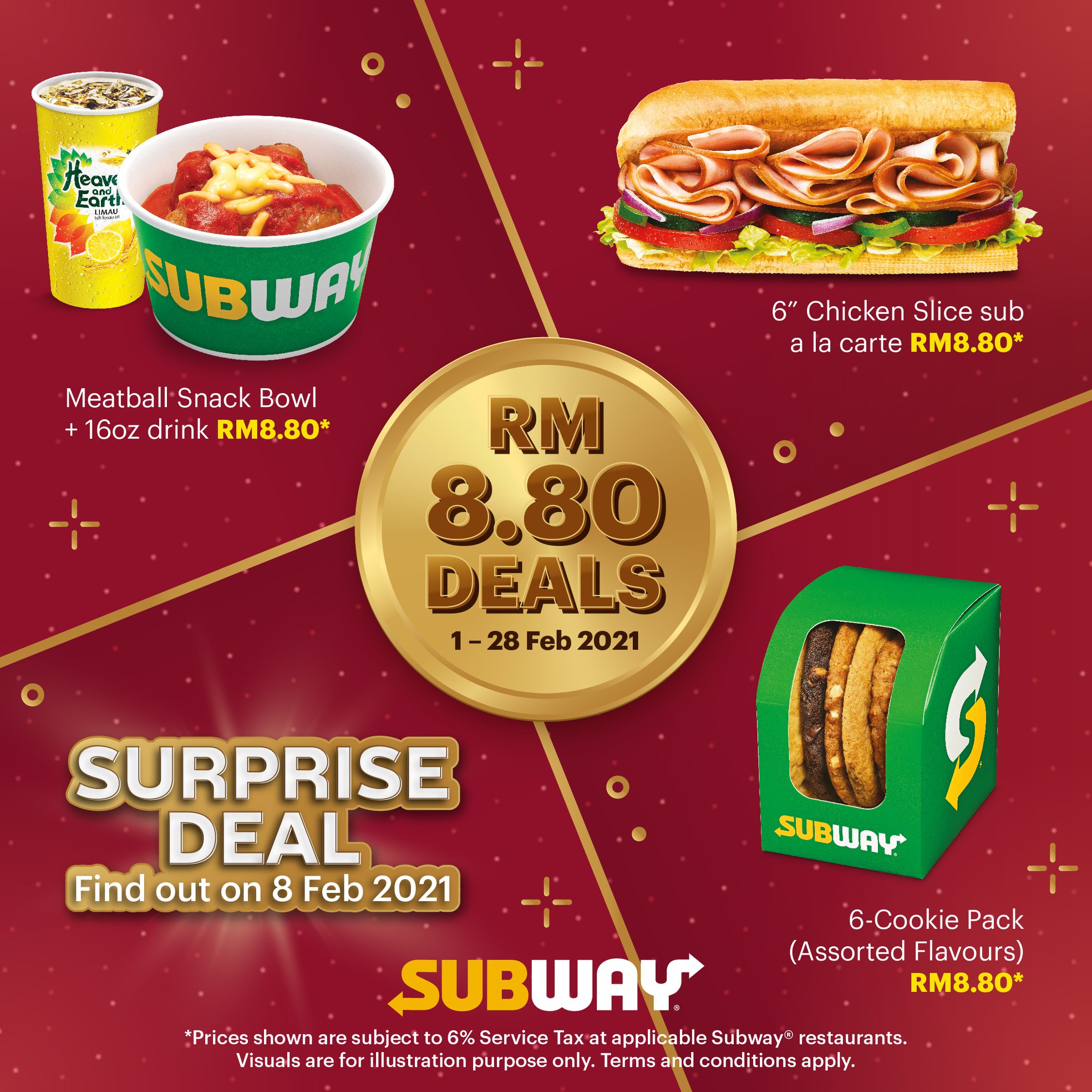 为了配合农历新年的到来,大马Subway 在这2月份推出4项促销优惠,美食只需RM8.80!