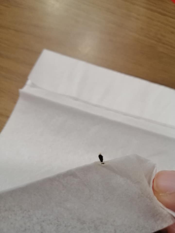 后来我家人跟这位“彬彬有理的老板娘”说真的是【虫】的时候,“老板娘”过来质问我说:「那张纸呢?!」
