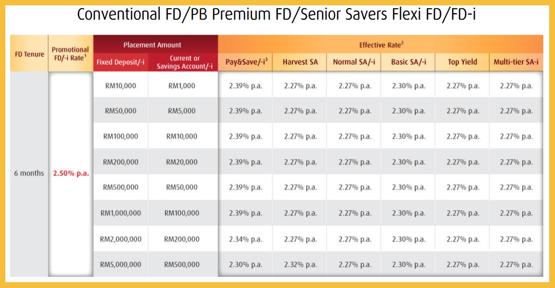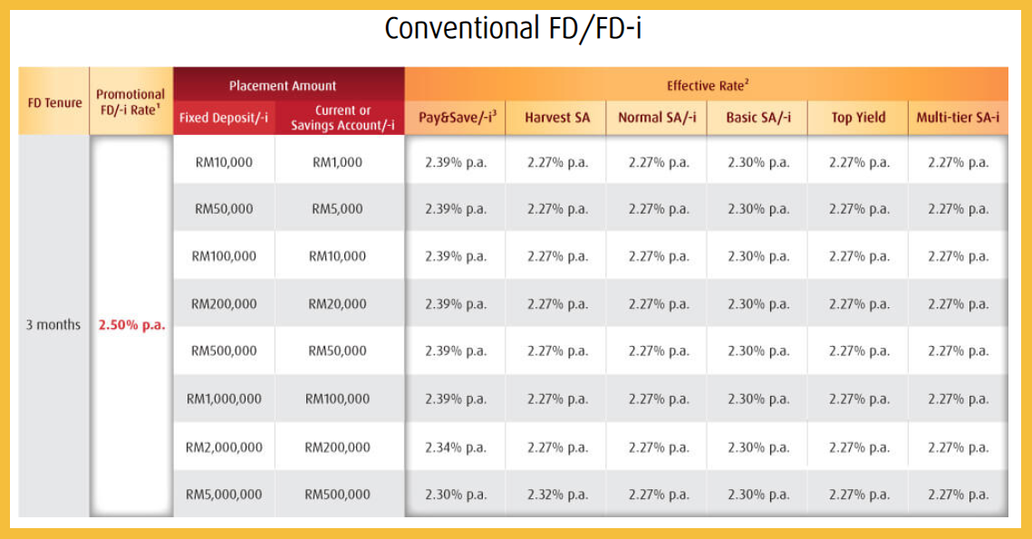 详情:这项优惠是定期和储蓄优惠,必须把资金分成80%对20%!FD的放置率为80%,CASA的放置率为20%!例如:你把RM4000放进定期存款,而存进储蓄户口最低RM1000!