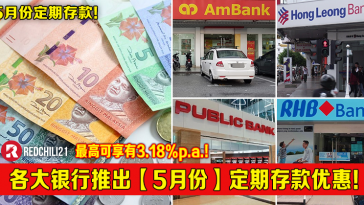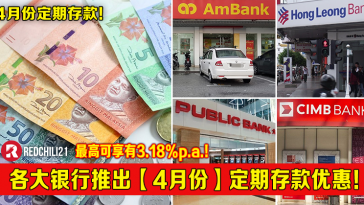 在这3月份,大马各大银行推出定期存款(Fixed Deposit)促销优惠,最高可享有3.18%p.a.!