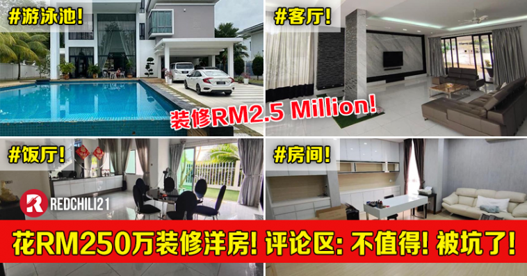 脸书粉专《房转世界》日前上传了一系列的照片并在介绍中写道,这栋独立式洋房的装修费用花了将近RM250万,而且据说售价是RM600万!然后打开照片一看,网友们都懵了:两百万怎么是这样?